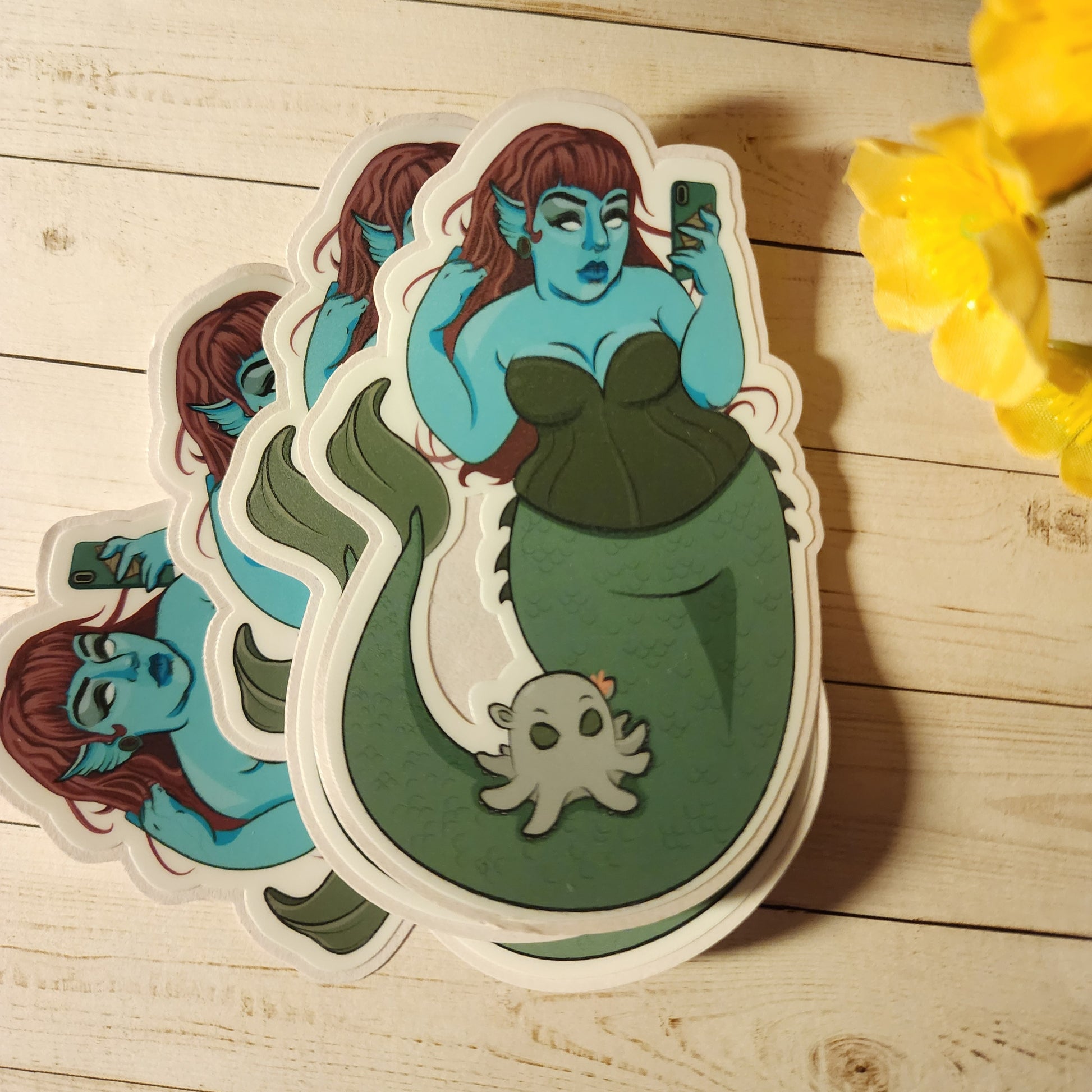Meet the Dark Mermaid and her trusty sidekick, Squiggles the Octopus! With her flowing, shadowy hair and enchanting, eerie allure, she commands the deep. Squiggles, with his eight wiggly arms and mischievous grin, adds a splash of charm to their otherworldly adventures. Together, they're the perfect blend of mystical mystery and quirky cuteness—ready to bring a touch of the ocean’s darker side to your sticker collection!