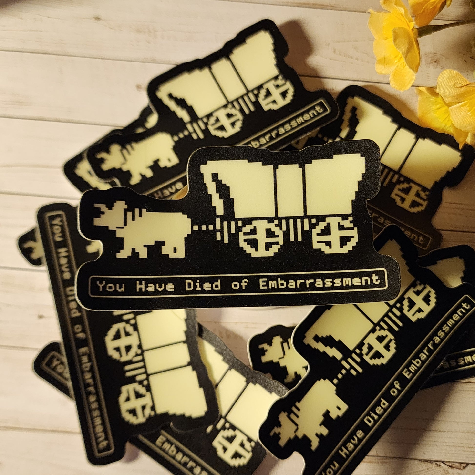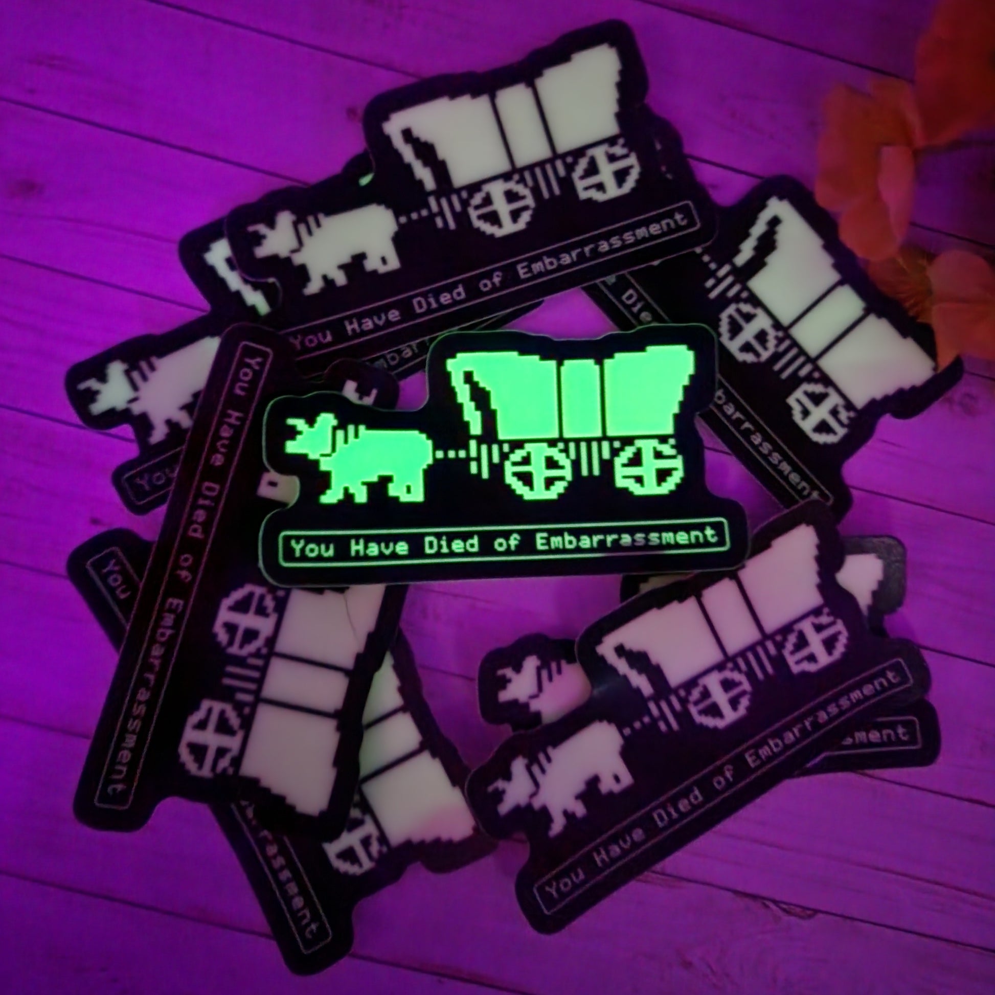 Oregon Trail. How about Oregon Fail. Don't worry though because this sticker glows in the dark. To remind you. Every time, of how you were embarrassed.